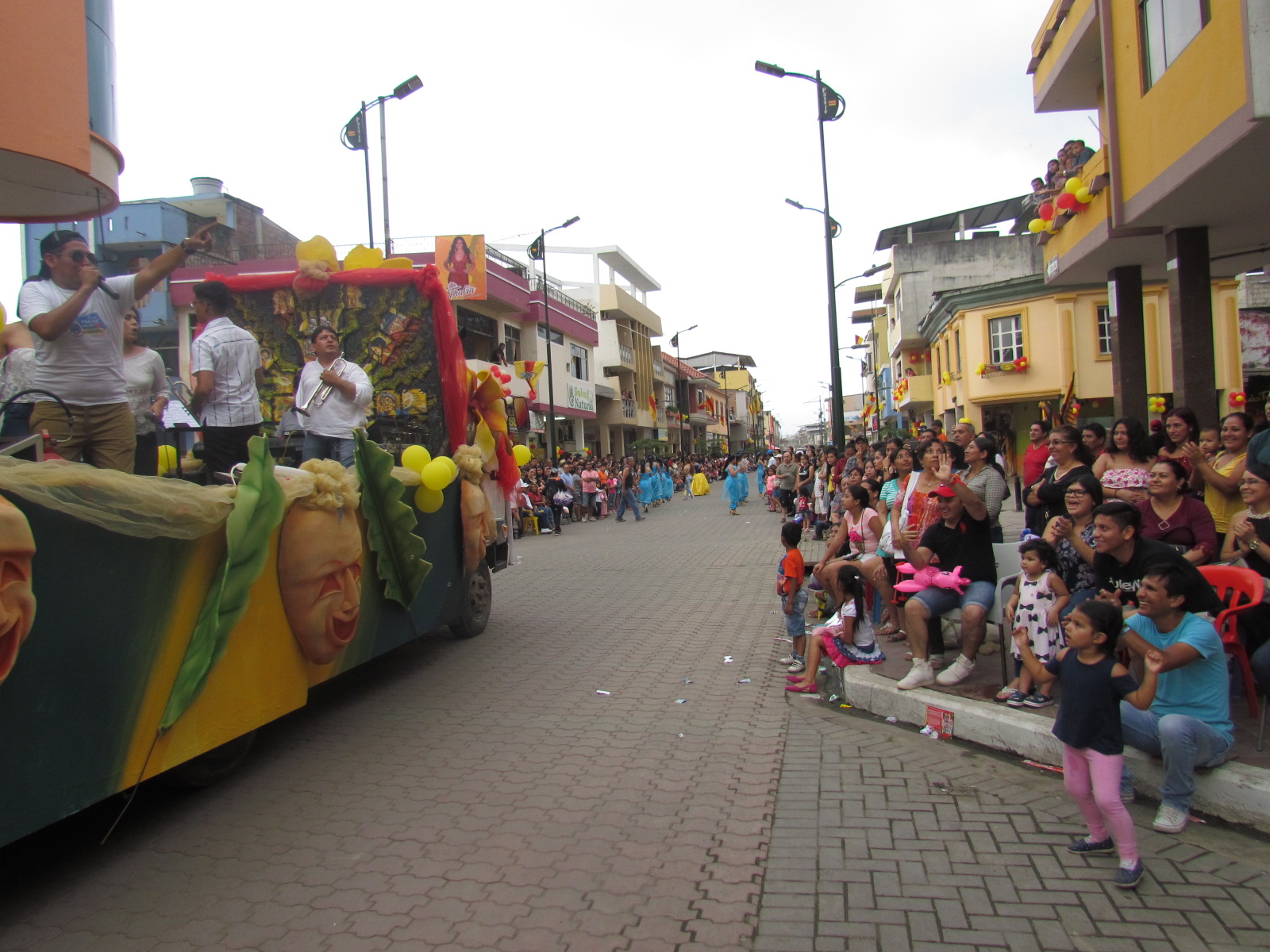 La vicerrectora académica, Amarilis Borja, presidió la delegación que estuvo conformada por un carro alegórico elaborado por los profesores y alumnos de la carrera de Artes Plásticas y Visuales, sobre el cual se ubicó un conjunto musical por parte de la Dirección de Cultura y Arte.